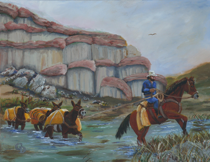 I’ve always loved the western genre and when I decided that my 2016 entries in the Old West Art show would be about trail herds, I started researching their history. After the Civil War, untended herds in Texas multiplied quickly as Union blockades cut the state off from market outlets. Four-dollar-per-head cattle in Texas could bring $40 to $50 apiece in eastern markets. The Bozeman Trail was an overland route connecting the gold rush territory of Montana to the Oregon Trail. The overland Bozeman Trail followed many north-south trails used by Shoshone, Arapaho, and Lakota nations since prehistoric times to travel through Powder River Country. The Bozeman Trails most important time was from 1863-1868. It was more direct and had better access to water than other trails into Montana. Bozeman and Jacobs's most significant role was to develop the trail so that it was wide enough for wagons. But the route had a major drawback — it passed directly through territory occupied by the Shoshone, Arapaho, and Lakota nations who were tired of the flow of settlers through their territory. Since many of these travelers showed little respect for the rights of the Native Americans, the movement triggered their antipathy and caused violence. The U.S. Army embarked on several military campaigns against the Indians to try to control the trail. Because of its link with frontier history and conflict with American Indians, some sections of the trail are listed on the National Register of Historic Places