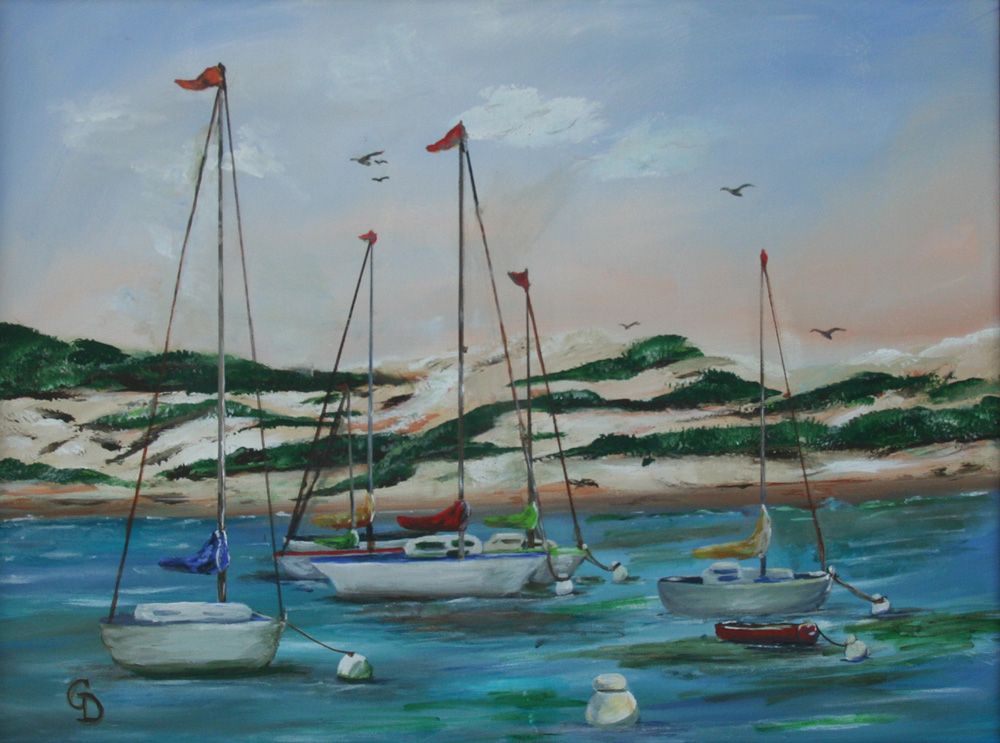 I have always found boats and ships fascinating. I took the photo for this painting when my husband and I attended the annual Pool Industry Expo (PIE) show some years ago. When I was a child, we lived in the Pismo area and I spend many days with my father on the Pismo Pier or on the shore. I have always loved watching the boats move in and out. Monterey Bay has a long history of being a safe haven for ships. As early as 1602, ships carrying elegant goods from the Manilla islands used the harbor. In 1870, a commercial wharf was built for regular passenger and freight service. Around 1913, commercial fishing industries began using it. It is now the largest marine sanctuary in the world and provides access to a variety of recreational activities.